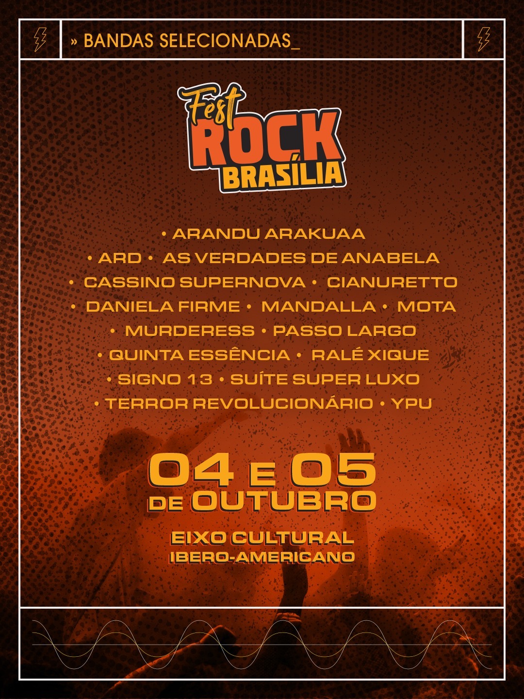 Em 2025, o Fest Rock Brasília se consolida como a principal vitrine dedicada exclusivamente ao rock autoral do DF e Entorno, oferecendo palco, estrutura profissional e visibilidade para artistas que mantêm a cena em constante renovação. As atrações selecionadas receberão cachê de R$ 4 mil cada.