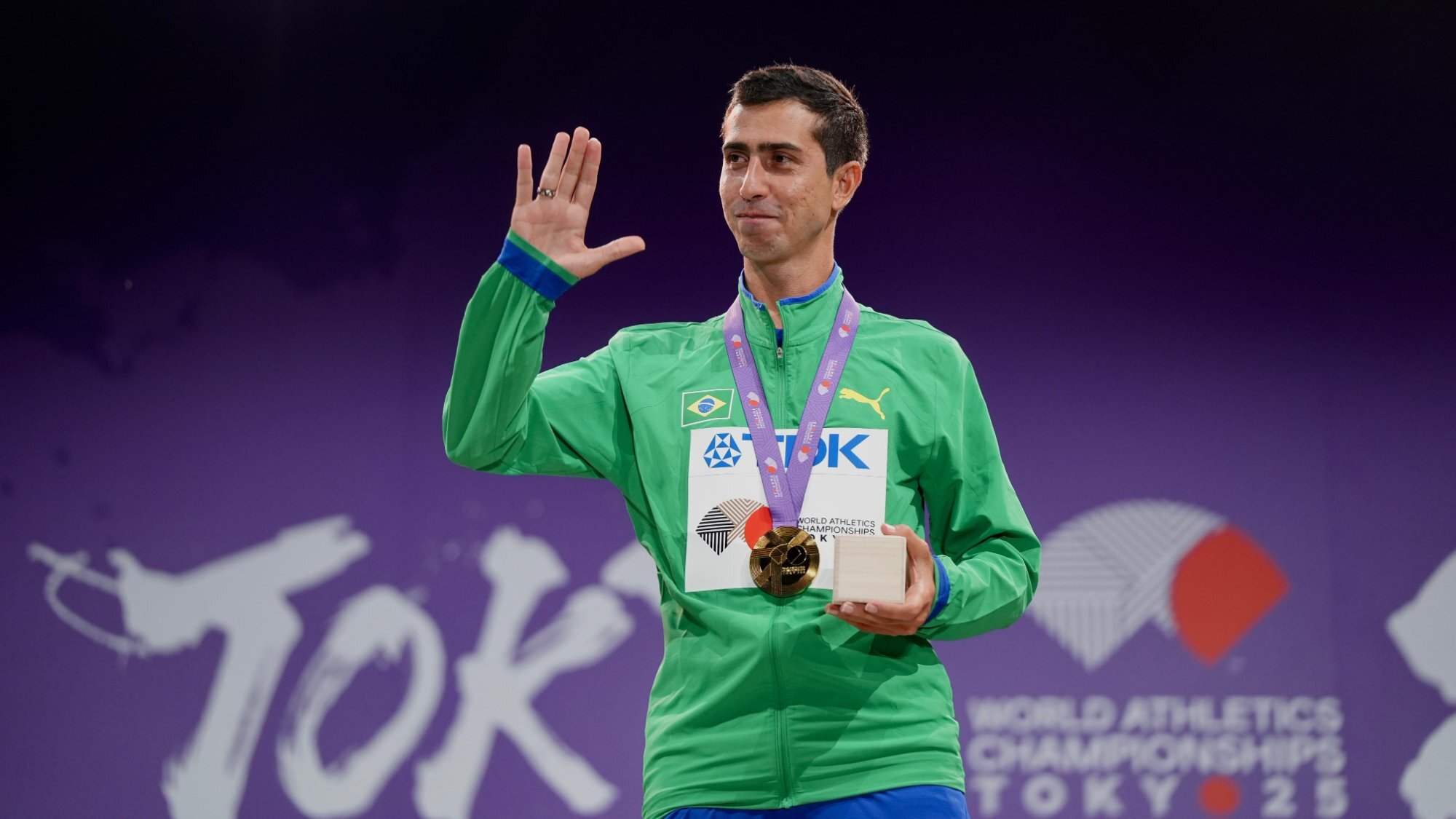Caio Bonfim recebe sua medalha de ouro no Mundial de Tóquio