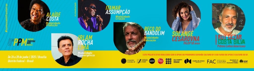 De 26 a 28 de junho, Brasília será, novamente, palco do Prêmio Profissionais da Música — PPM. Em sua 8ª edição, celebra nomes fundamentais da cena musical brasileira, africana e latino-americana e abre caminhos para além do cenário nacional. A edição marca uma virada na história do PPM, com ações estratégicas de internacionalização. A programação incorpora a comemoração dos 50 anos de independência dos Países Africanos de Língua Oficial Portuguesa — PALOP, e realiza o 1º Prêmio Latino-americano, em parceria com a Asociación para el Desarrollo de la Integración de la Música Iberoamericana — ADIMI, e a Red de Periodistas Musicales de Iberoamérica — REDPEMIB. Desta forma, a edição atua para conectar o Brasil a mercados africanos, latino-americanos e ibéricos, promovendo trocas, reconhecimentos e circulação internacional entre os seus profissionais da música. Em 2025, as honrarias dos segmentos Produção, Criação, Convergência e Educação vão, respectivamente, para: Alaíde Costa, cantora e compositora de sensibilidade rara e uma das grandes vozes da música brasileira; Itamar Assumpção (in memoriam), referência incontornável da Vanguarda Paulista, por sua obra autoral disruptiva e poética; Irlam Rocha Lima, jornalista cultural com quase cinco décadas de dedicação à valorização da cena musical; e Reco do Bandolim, músico, educador e fundador do Clube do Choro de Brasília, reconhecido como importante difusor desse estilo musical 100% brasileiro. Às temáticas oficiais, somam-se duas especiais. Em Latam, a reverência destaca Ruy Cezar Costa Silva (in memoriam), artista, educador e articulador cultural brasileiro que levou a produção latino-americana aos palcos do mundo; e, em PALOP, Solange Cesarovna, uma das maiores vozes da música cabo-verdiana contemporânea, recebe a homenagem.