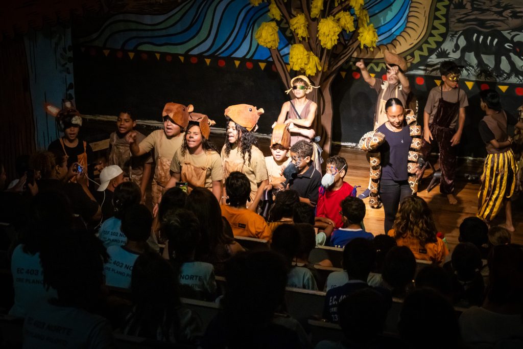 O livro é uma experiência completa, reunindo também as partituras das músicas que embalam o espetáculo teatral, encenado em setembro por estudantes do Ensino Fundamental da Escola Parque 303/304 Norte. A montagem reforçou o caráter pedagógico e artístico do projeto, estimulando a expressão criativa, a leitura dramática, o trabalho coletivo e o contato direto dos alunos com a linguagem teatral. A direção artística foi assinada por Helena Maria, com arranjos do pianista Danilo Cabral e dos músicos Fernando Fernandes e Deyse Bentim.
