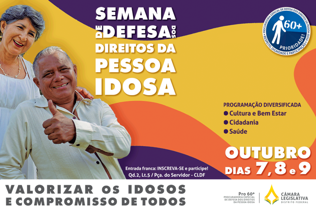 A iniciativa visa promover a valorização da pessoa idosa por meio de três eixos temáticos: “Saúde e Qualidade de Vida”, “Cidadania” e “Cultura e Bem Estar”. O objetivo é facilitar o acesso a políticas públicas, difundir conhecimento sobre direitos e fortalecer a conexão entre a população idosa e o Poder Legislativo local. A abertura oficial está marcada para as 9h do dia 7 de outubro, terça-feira, no Auditório da CLDF.