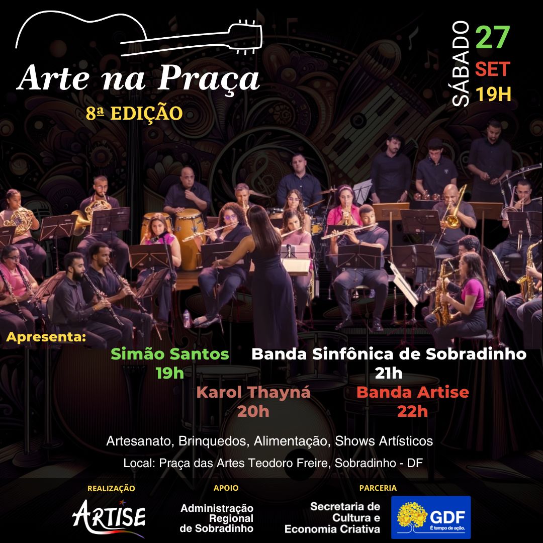 “Vamos apresentar ao público, nesta VIII edição do ARTE NA PRAÇA, a maior vitrine artístico-cultural de Sobradinho e do DF. Será um grande presente para as pessoas que prestigiam as produções da ARTISE”, garante Alex Paz.